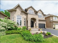 STUNNING MODEL HOME WITH OVER 4000 SQUARE FEET OF LUXURIOUS LIVING. Four Bedrooms, 5 Baths with in-ground, heated, saltwater pool. Located in most sought-after Cherrywood Estates among other Luxury Homes. Featuring: 10 foot ceilings, crown mouldings, recessed lighting, hardwood floors. The unique open-concept design & spacious principal rooms are ideally suited for hosting & entertaining. The gourmet kitchen with high-end appliances, abundant cabinetry, large island, butlers pantry & quartz counters is open to Great Room with soaring ceilings, gas fireplace & large windows overlooking the very private fenced backyard oasis with deck, in ground-heated pool & patios surrounded by mature trees. Main floor office, main floor laundry. Staircase to upper level leads to spacious primary bedroom suite with spa-like 5 PC ensuite bath, wall to wall built-in cabinetry & walk-in closet. Open staircase to lower-level leads to bright & beautifully finished rec room with 9 foot ceilings, bath & ample storage. OTHER FEATURES INCLUDE: C/air, C/vac, garage door opener, new washer and dryer (2023), new pool liner (2025), new pool heater (2021), finished basement (2020), custom drapery (2018), new laundry cabinetry (2023), Kitchen countertops (new 2018). Wine fridge, pool equipment, gas fireplace, built-in microwave, Jack & Jill 5PC bath. Less than 5 minutes to QEW, steps to park with short stroll to school & conveniences. This elegant home shows pride of ownership and is meticulously maintained inside & out with attention to every detail!